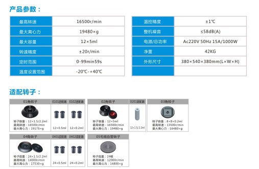 产品介绍 应用领域: ●广泛应用于医学检验,生命科学,生物工程,生物化学、医学研究、农牧业、生物制药等领域。 产品特性: ●钢制机身,大力矩无刷电机驱动:无碳粉污染,噪音低、震动小、转速控制精度高。 ●彩屏界面显示:转速,离心力,运行时间,转子号,升降速率等。按键控制 ●内置10种升/降速率档位,升降速率最快可达15S,用户可根据实验需求自行选择档位,确保离心效果佳,带瞬时离心功能。 ●高效环保制冷压缩机:智能化预冷,制冷速度快,温控精度高。 ●多级阻尼减震设计:震动小,离心效果佳. ●具有门盖、误操作等诊断功能,机器可直接显示故障信息,便于判断和维修,确保人机安全。